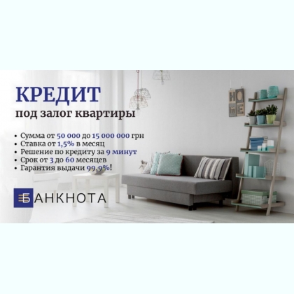 Предоставляем финансирование в Киеве, Киевской области, Львове, Виннице, Житомире, Черновцах, Ровно, Ивано-Франковске, Хмельницком, Тернополе и Ужгороде. Оставьте заявку онлайн или позвоните нам – и получите кредит под залог недвижимости быстро и без лишних хлопот! 38 063 930 99 99 38 067 930 99 99 Марія http://banknota.kiev.ua/ua http://banknota.kiev.ua/ua-kredit-pod-zalog-kvartiry Телеграм: @banknota1 Facebook: http://facebook.com/FinancecompanyBanknota Instagram: http://instagram.com/infobanknota Google-карта: https://g.page/FinancecompanyBanknota?share